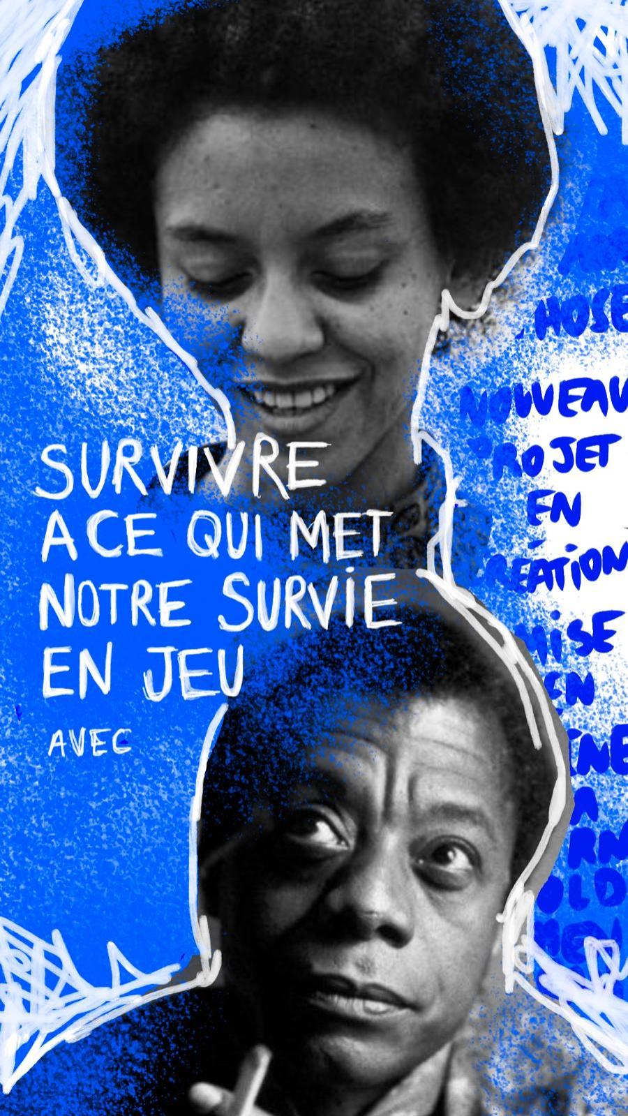Ce court spectacle est une tentative, un labo ouvert. Le point de départ, deux génies littéraires : James Baldwin et Nikki Giovanni. Deux figures noires, deux univers et un dialogue, diffusé au grand public, transcrit sur papier.